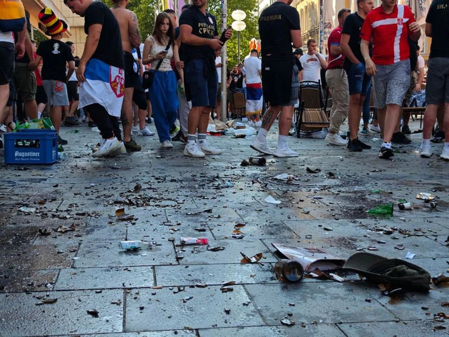 Болельщики Сербии устроили погром на улицах Мюнхена перед игрой с Данией. Сербы кидали бутылками в полицейских и громили витрины, полиция использовала перцовые баллончики