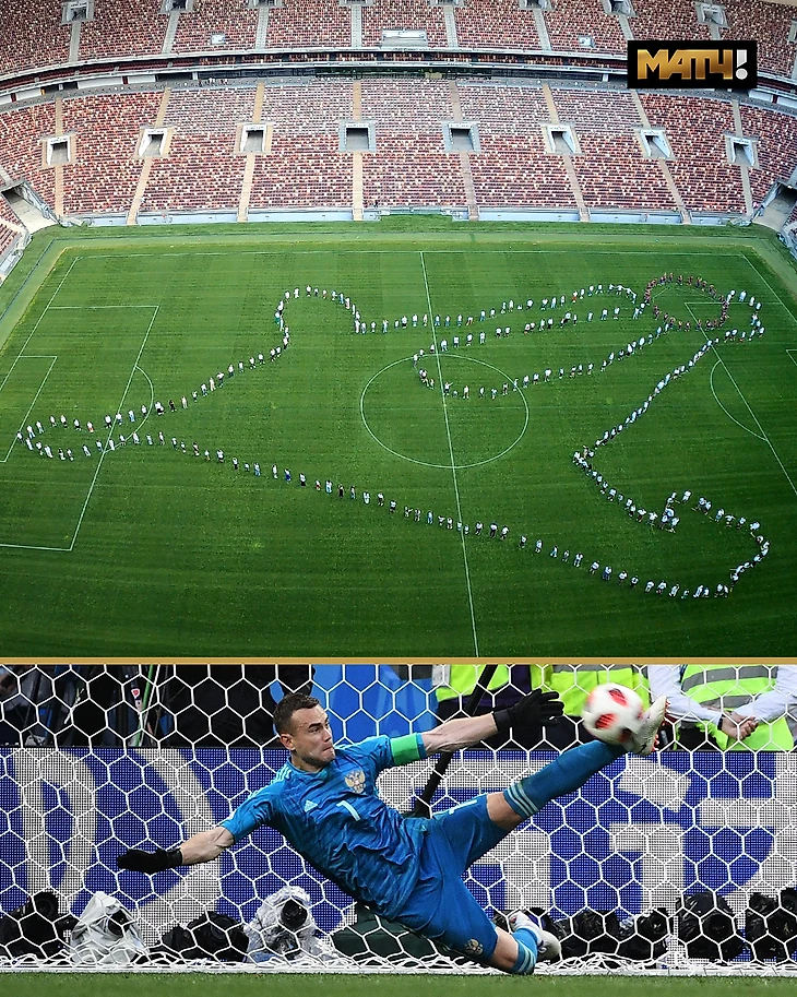 «Матч ТВ» организовал флэшмоб с «ногой Акинфеева» в «Лужниках» к 6-летию победы над Испанией на ЧМ-2018. Участники выстроиоись в силуэт сэйва вратаря в серии пенальти