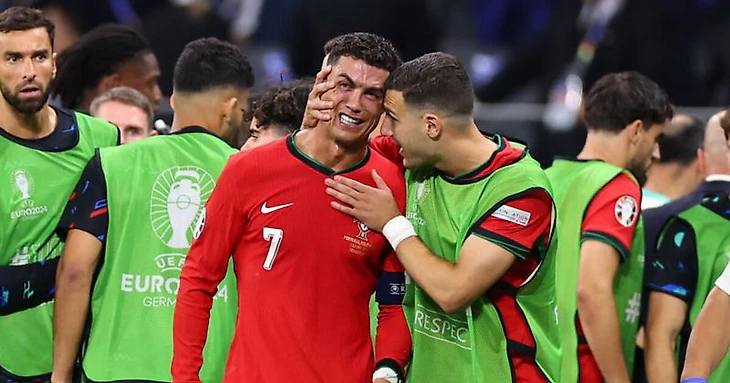 В паузе между таймами, когда команда собралась в круг для обсуждения ситуации, Роналду заплакал. И партнеры, и тренер Роберто Мартинес принялись утешать 39-летнего футболиста.