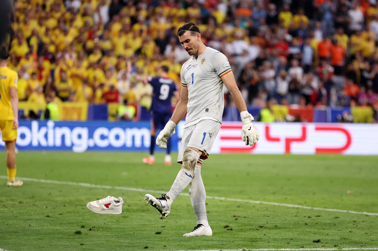 Вратарь Румынии отвлекся на кроссовки фаната перед голом Нидерландов.