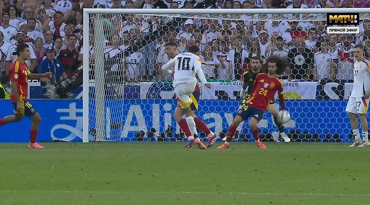 Главный судья матча между сборными Испании и Германии (2:1) в 1/4 финала Евро-2024 Энтони Тэйлор не назначил пенальти в эпизоде с попаданием мяча в руку защитнику Марку Кукурелье после удара хавбека Джамала Мусиалы.