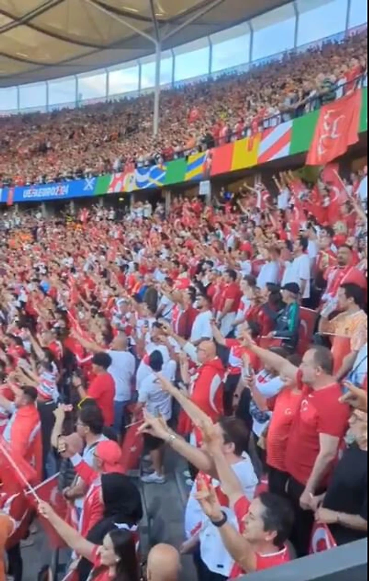 Болельщики сборной Турции показывали «волчий салют» перед матчем Евро-2024.