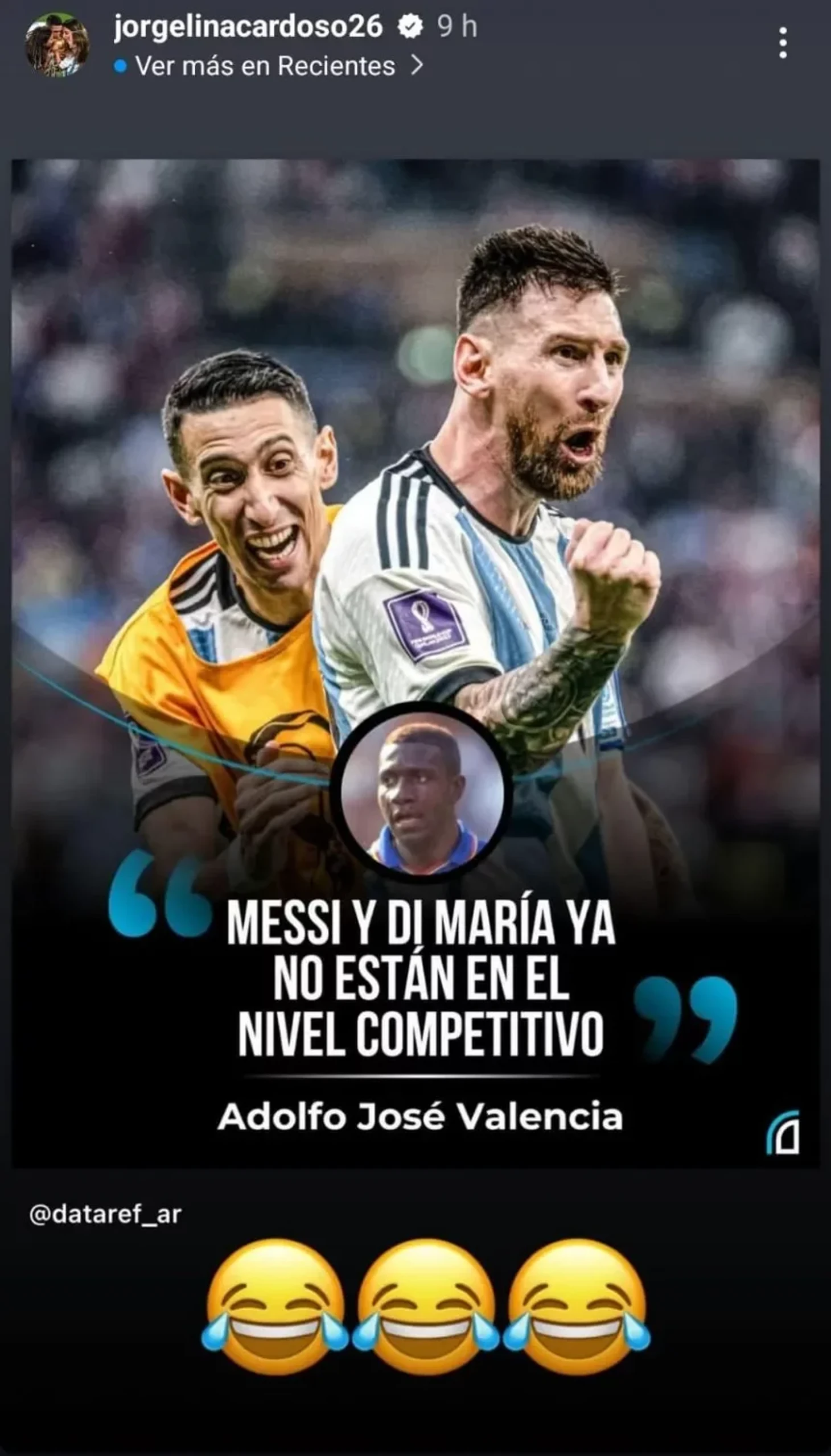 Хорхелина Кардосо выложила в соцсети картинку с цитатой Валенсии, сопроводив ее тремя смеющимися эмодзи: «😂😂😂».