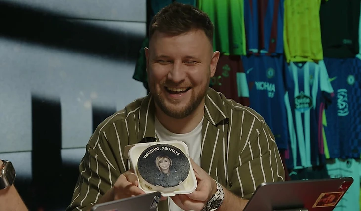 Шнякину вручили торт с фото Долецкой и надписью «Умоляю, увольте» в «Коммент.Превью». Генич воткнул свечку, Дмитрий задул: «Чтобы срача еще было больше»