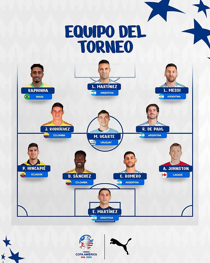 КОНМЕБОЛ представила символическую сборную Кубка Америки-2024.