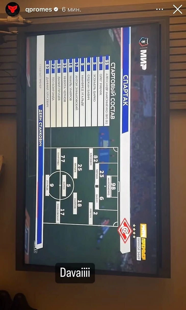 Перед началом встречи бывший полузащитник красно-белых выложил фотографию телевизора, на котором включена трансляция этого матча. «Давайййй», – написал нидерландец на латинице.