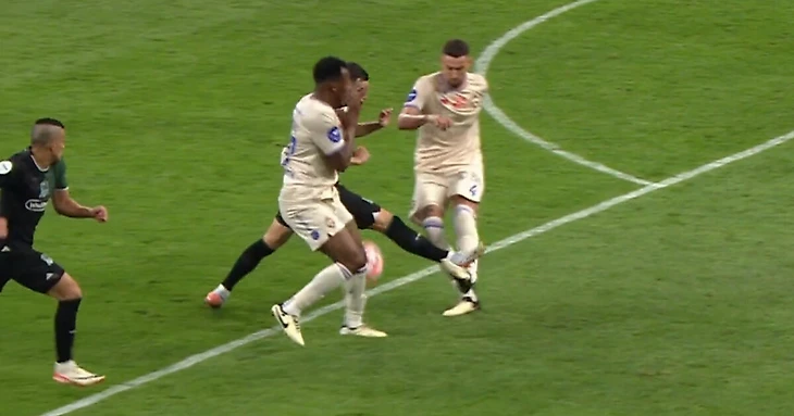 На 40-й минуте матча 4-го тура Мир РПЛ полузащитник «Краснодара» шипами попал в голень защитнику ЦСКА, пытавшемуся выбить мяч из штрафной площади.