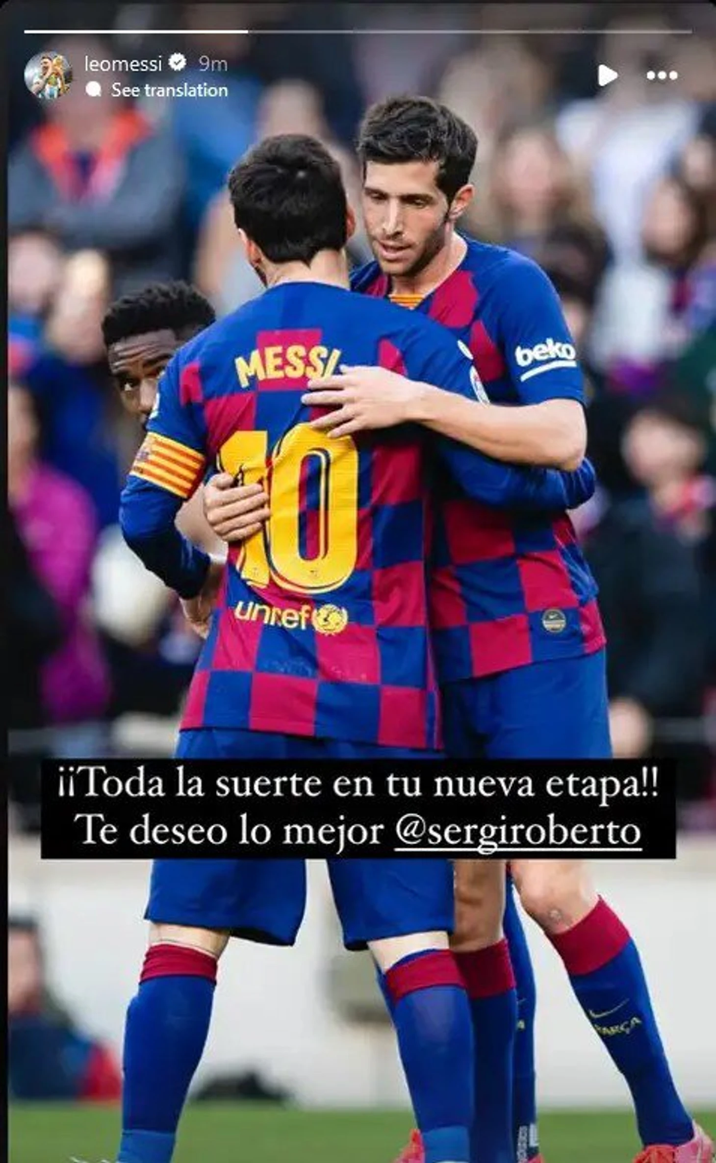 Лионель Месси опубликовал послание Серджи Роберто после его ухода из «Барселоны».