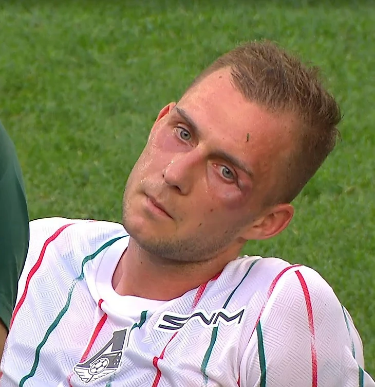 У Баринова вздулась гематома под левым глазом после столкновения с Давилой из ЦСКА. Хавбека «Локо» заменили