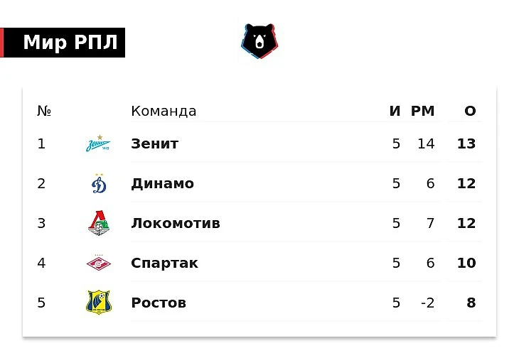 В 5-м туре Мир РПЛ команда Деяна Станковича разгромила «Факел» (3:0), в то время как команда Сергея Семака разделила очки с «Химками» (1:1).