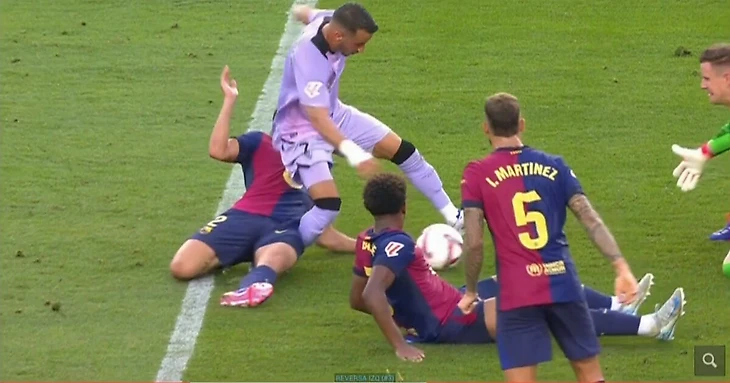 Главный судья Хесус Хиль Мансано ознакомился с видеоповтором и назначил одиннадцатиметровый, заодно показав сфолившему футболисту желтую карточку.