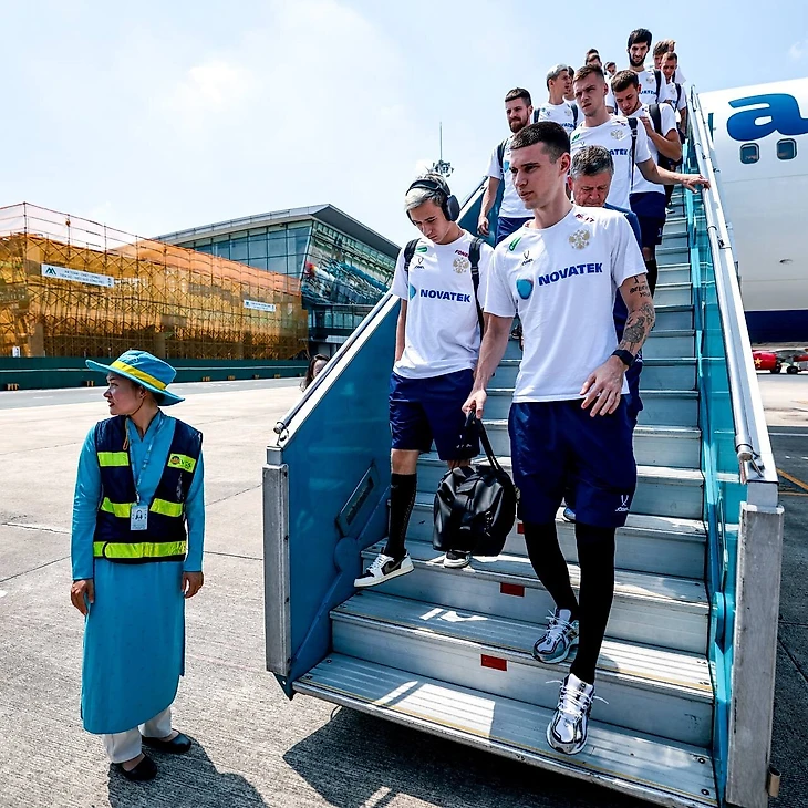 Сборная России прилетела в столицу Вьетнама, где проведет товарищеские матчи.