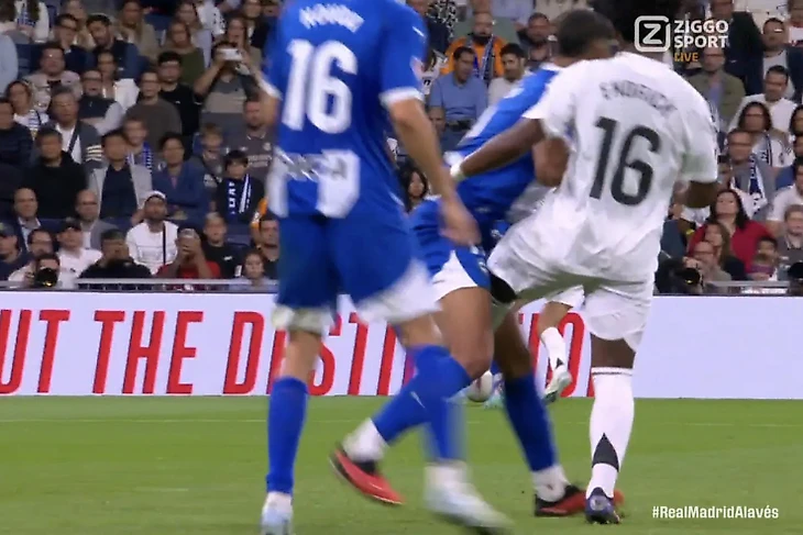 «Эндрик ударил коленом игрока «Алавеса» Моуриньо, не борясь за мяч, и получил предупреждение. Думаю, рефери подумал, что форвард действовал безрассудно, поэтому он вынес предупреждение.