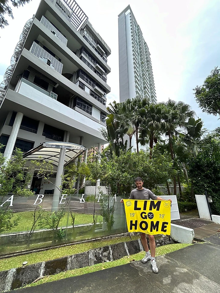 У фаната «Валенсии» и его жены в Сингапуре забрали паспорта и запретили покидать отель. Болельщик наклеил на дверь дома владельца клуба Лима стикер с призывом уйти