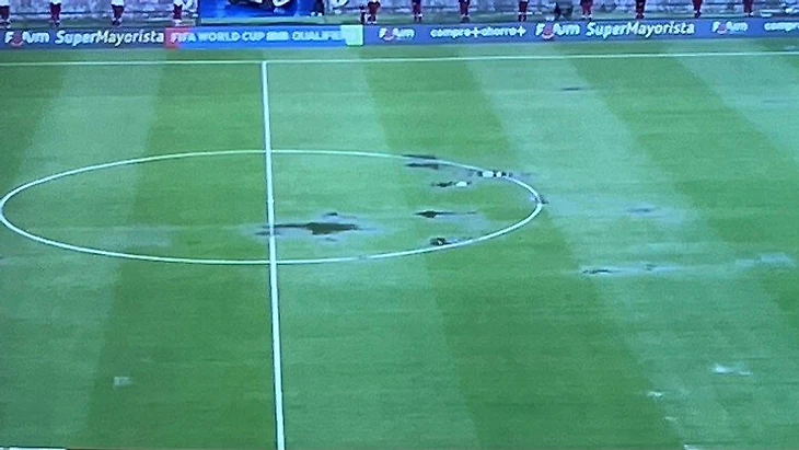 Однако после ливня на стадионе в Венесуэле возникли проблемы с газоном – образовались лужи, мяч не прыгал и не катился по траве. Сотрудники стадиона принялись швабрами и граблями сгонять воду с поля.