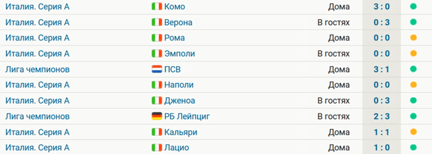 С учетом Лиги чемпионов «бьянконери» провели в этом сезоне 10 матчей, добившись 6 побед и четырежды сыграв вничью.