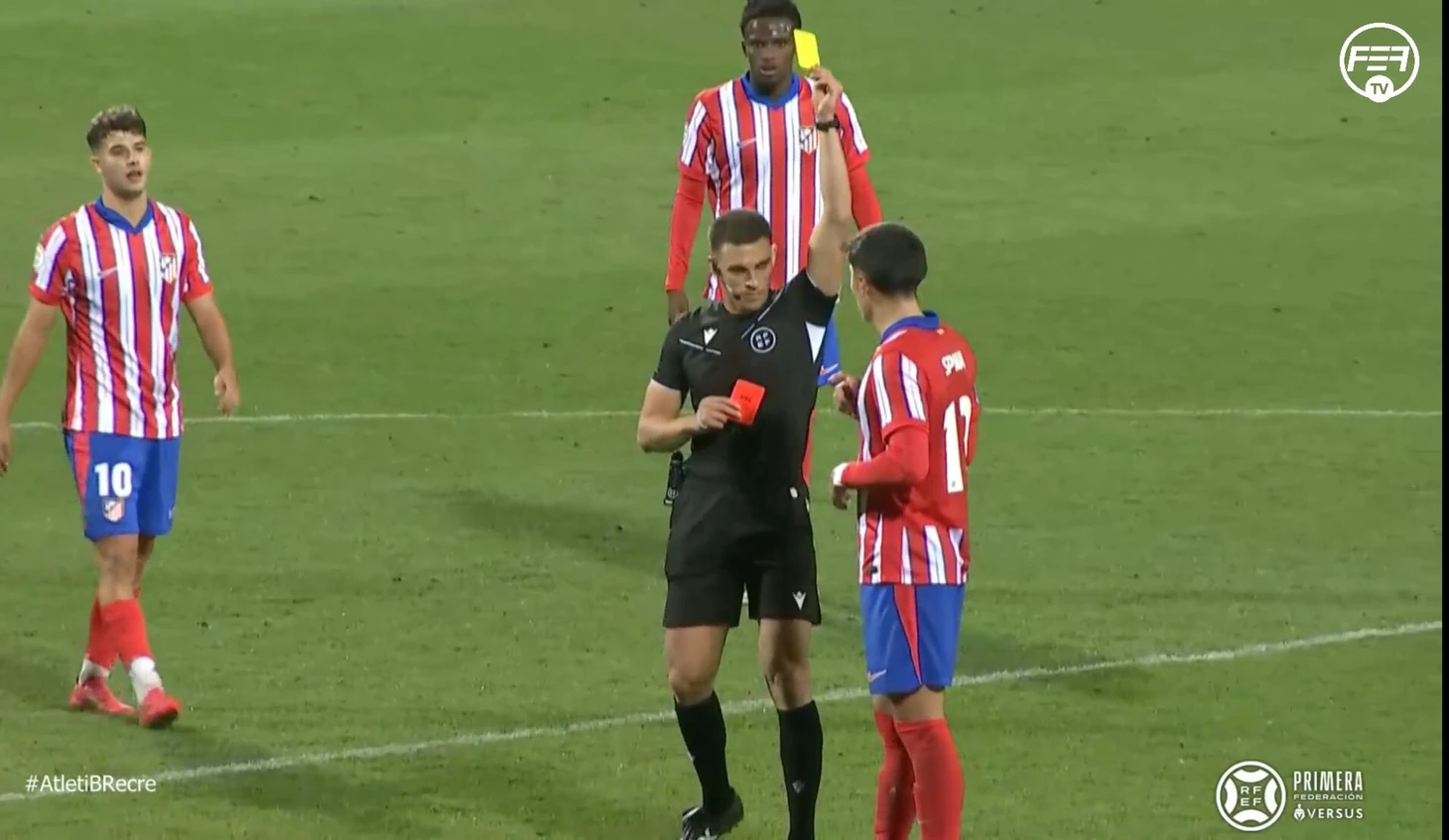 Однако футболисты «Атлетико Б» начали жаловаться, и рефери отправился обсудить ситуацию с лайнсменом – видеоповторов в этой лиге нет. После разговора Ортуньо изменил решение и продемонстрировал желтую Геро Спине, тоже поучаствовавшему в эпизоде.
