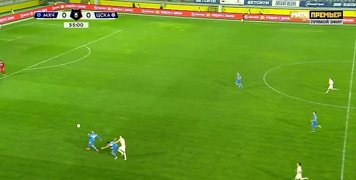 На 56-й минуте после заброса мяча в сторону ворот махачкалинцев нападающий ЦСКА Мусаев в борьбе с двумя защитниками сначала подтолкнул пытавшегося выставить блок Идара Шумахова, а затем перехватил мяч у не сумевшего его обработать Валентина Пальцева и вышел один на один с вратарем «Динамо».