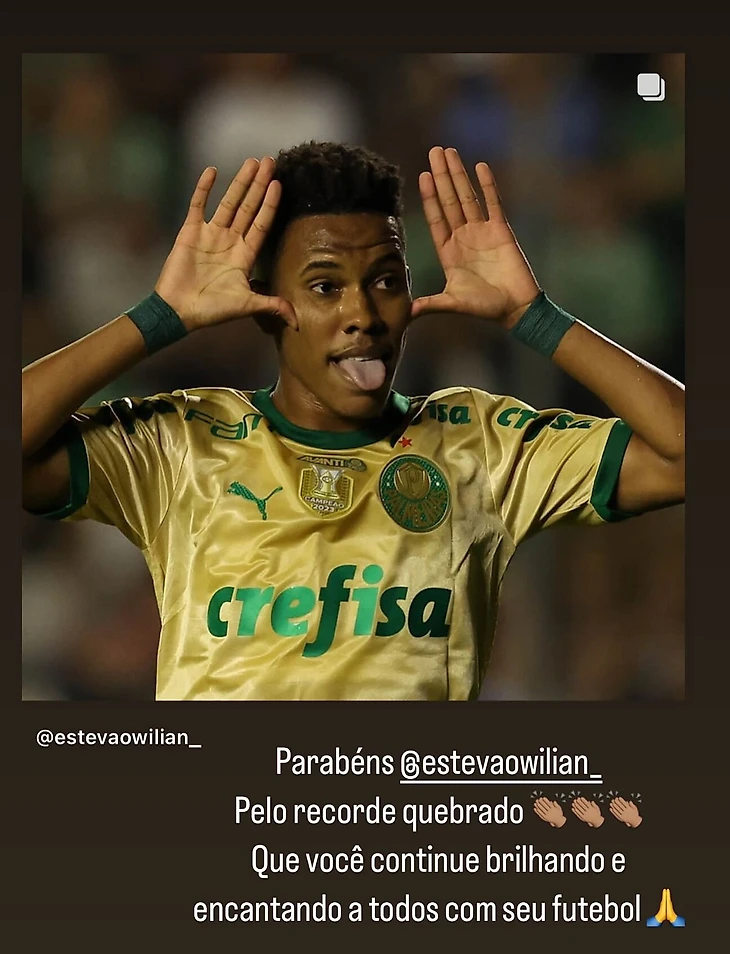 «Поздравляю Эстевана с побитым рекордом. Продолжай сиять и радовать всех своим футболом», – написал 32-летний форвард «Аль-Хилаля» в сториз соцсети.