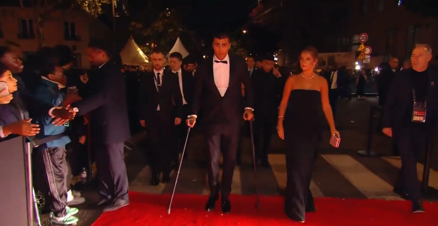 Родри прибыл на красную дорожку церемонии на костылях и дал комментарий.