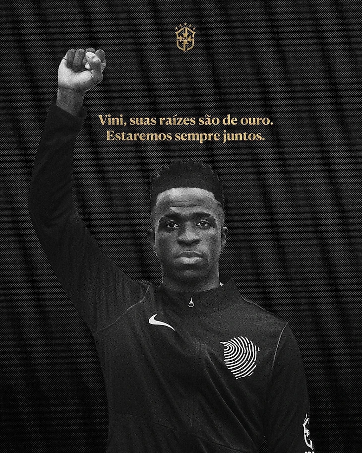 «Вини, ты золотой. Мы всегда будем вместе! Целая нация гордится тобой ✊🏿🇧🇷», – говорится в сообщении Бразильской конфедерации футбола.