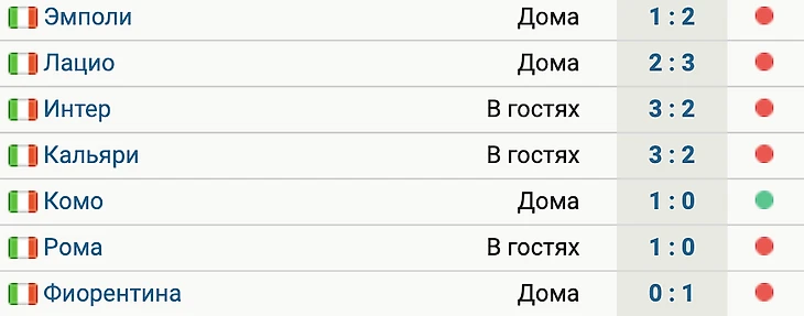Команда бывшего тренера «Спартака» уступила на своем поле «Фиорентине» (0:1) в 11-м туре Серии А.