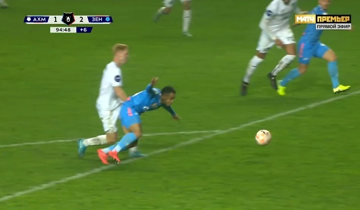 Камилов получил прямую красную на 95-й минуте матча с «Зенитом». Хавбек «Ахмата» придержал руками Педро возле штрафной