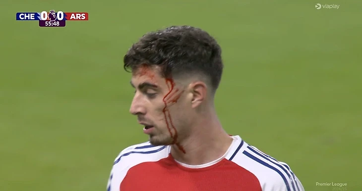 Хавертц разбил голову во 2-м матче подряд. В игре с «Челси» судья Оливер дал игроку «Арсенала» желтую за отказ уйти с поля с кровью
