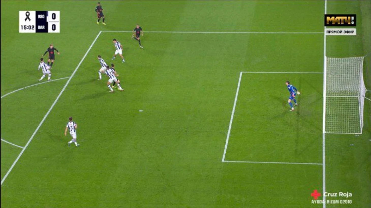Гол «Барселоны» в ворота «Реал Сосьедад» отменен из-за офсайда.