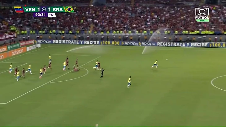 В этот момент игроки сборной Бразилии, уже раздраженные грубой игрой венесуэльцев, начали яростно протестовать напротив судьи, полагая, что это было сделано намеренно.