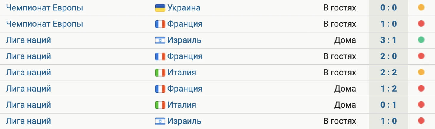 Последние две встречи также закончились поражением – от Франции (1:2) и Италии (0:1).