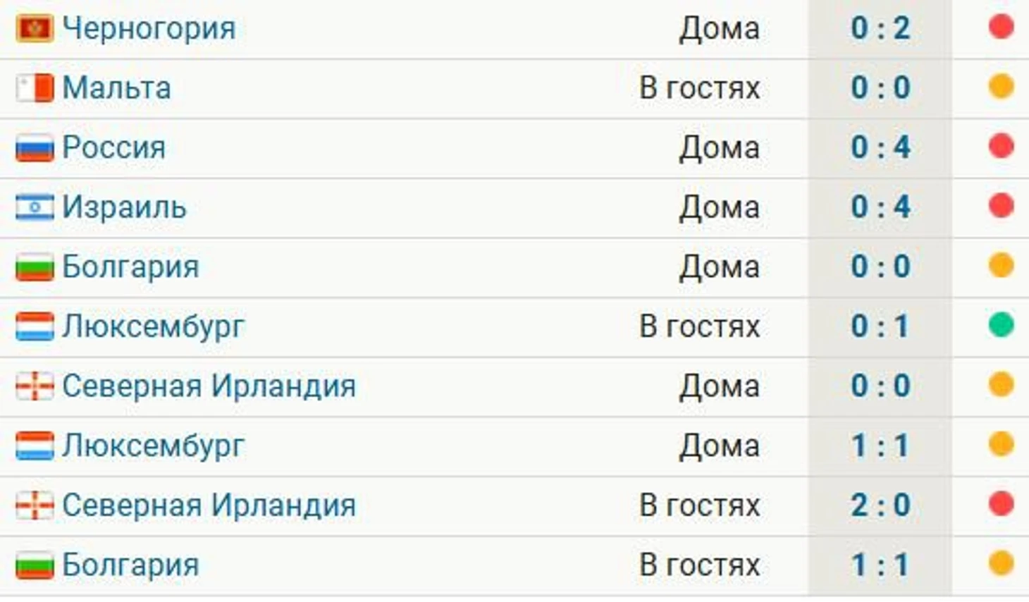 У Беларуси 1 победа в 10 последних матчах – над Люксембургом. Команда финишировала 3-й в группе дивизиона C Лиги наций