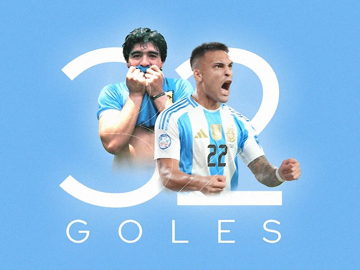 Лаутаро догнал Марадону по числу голов за сборную Аргентины (32). Они делят 5-е место в списке лучших бомбардиров команды