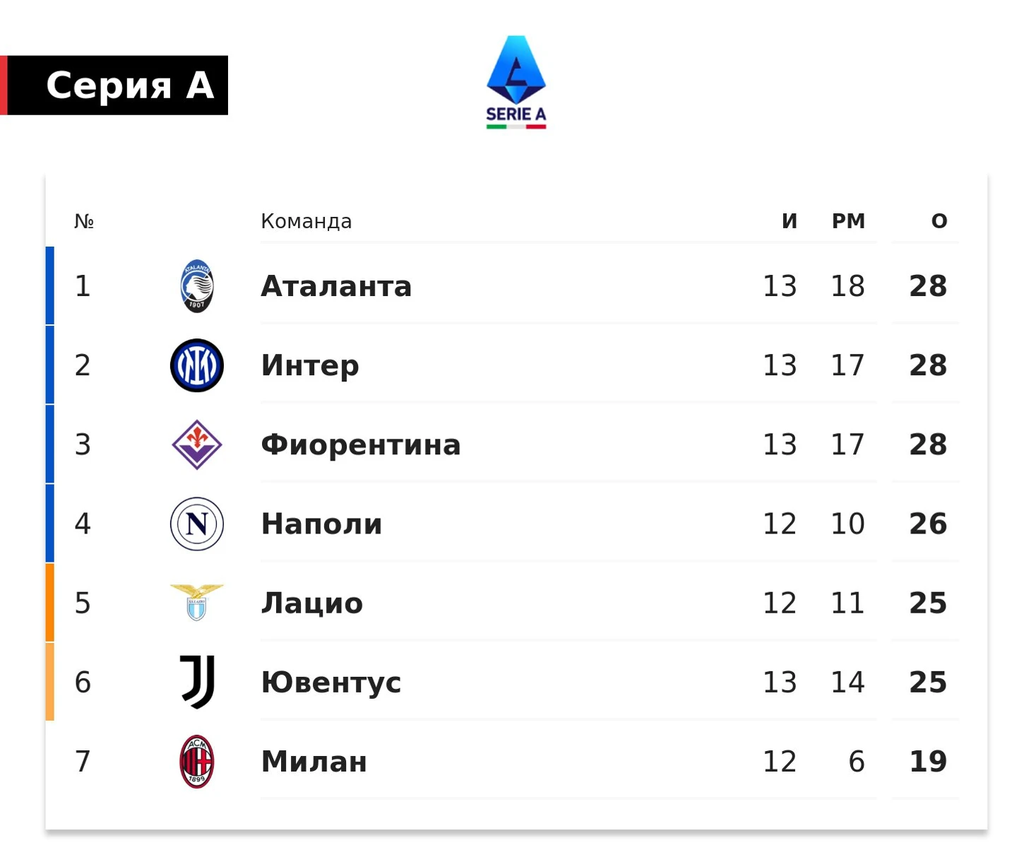 «Фиалки» сегодня одержали седьмую победу в Серии А подряд (над «Комо» – 2:0) и идут на текущий момент на третьем месте.