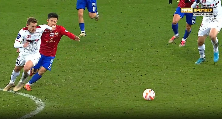 Полузащитник гостей Дмитрий Кабутов отмахнулся от Аббосбека Файзуллаева и ладонью попал ему в челюсть.