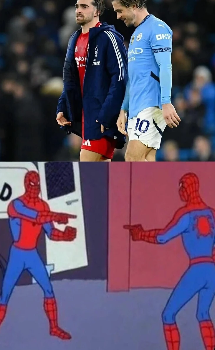 • Грилиш выложил мем с двойником Человека-паука, пошутив о сходстве с Силвой из «Ноттингема»