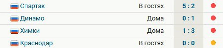 «Краснодар» не побеждает в 5 последних матчах подряд – на этом отрезке команда Мурада Мусаева 4 раза сыграла вничью и разгромно проиграла «Спартаку» (0:3). Последнюю победу «Краснодар» одержал 3 ноября в матче с «Оренбургом» (4:0).