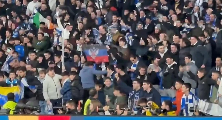 В соцсетях появилось видео, на котором видно, как во время празднования одного из голов некоторые фанаты «Реал Сосьедад» показали флаг ДНР.