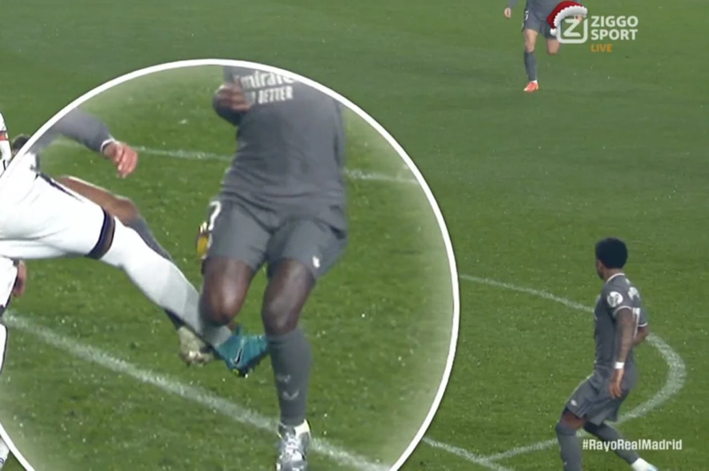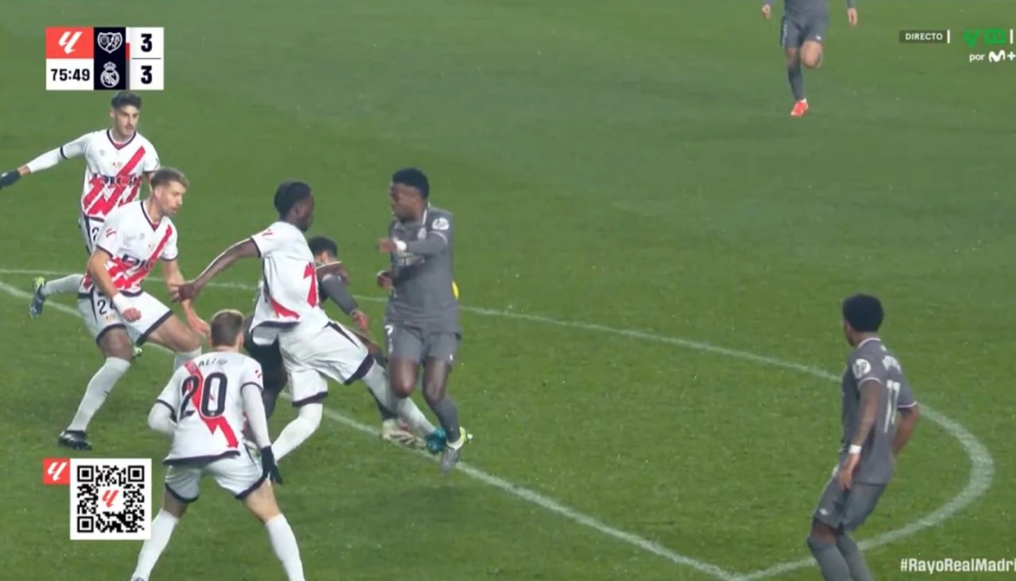 Бразилец оказался на газоне в штрафной площади «Райо» в момент атаки мадридцев на 76-й минуте матча 17-го тура Ла Лиги (3:3). На повторе виден контакт игрока хозяев с ногой Винисиуса.