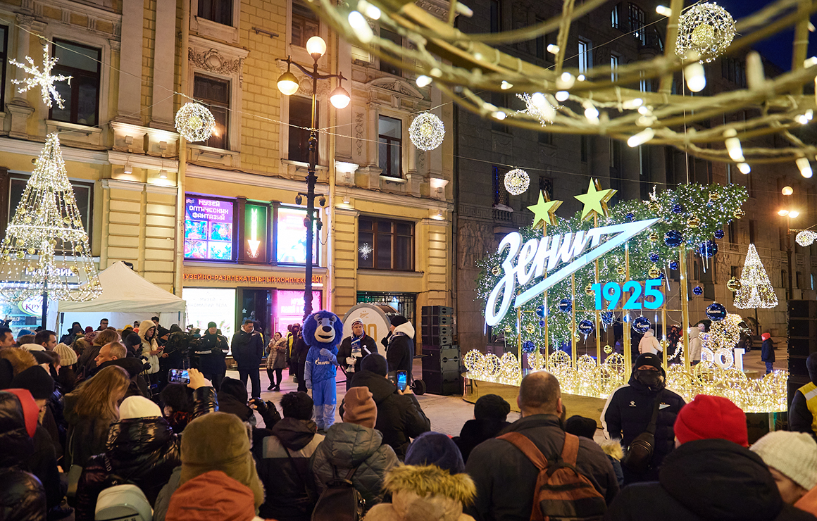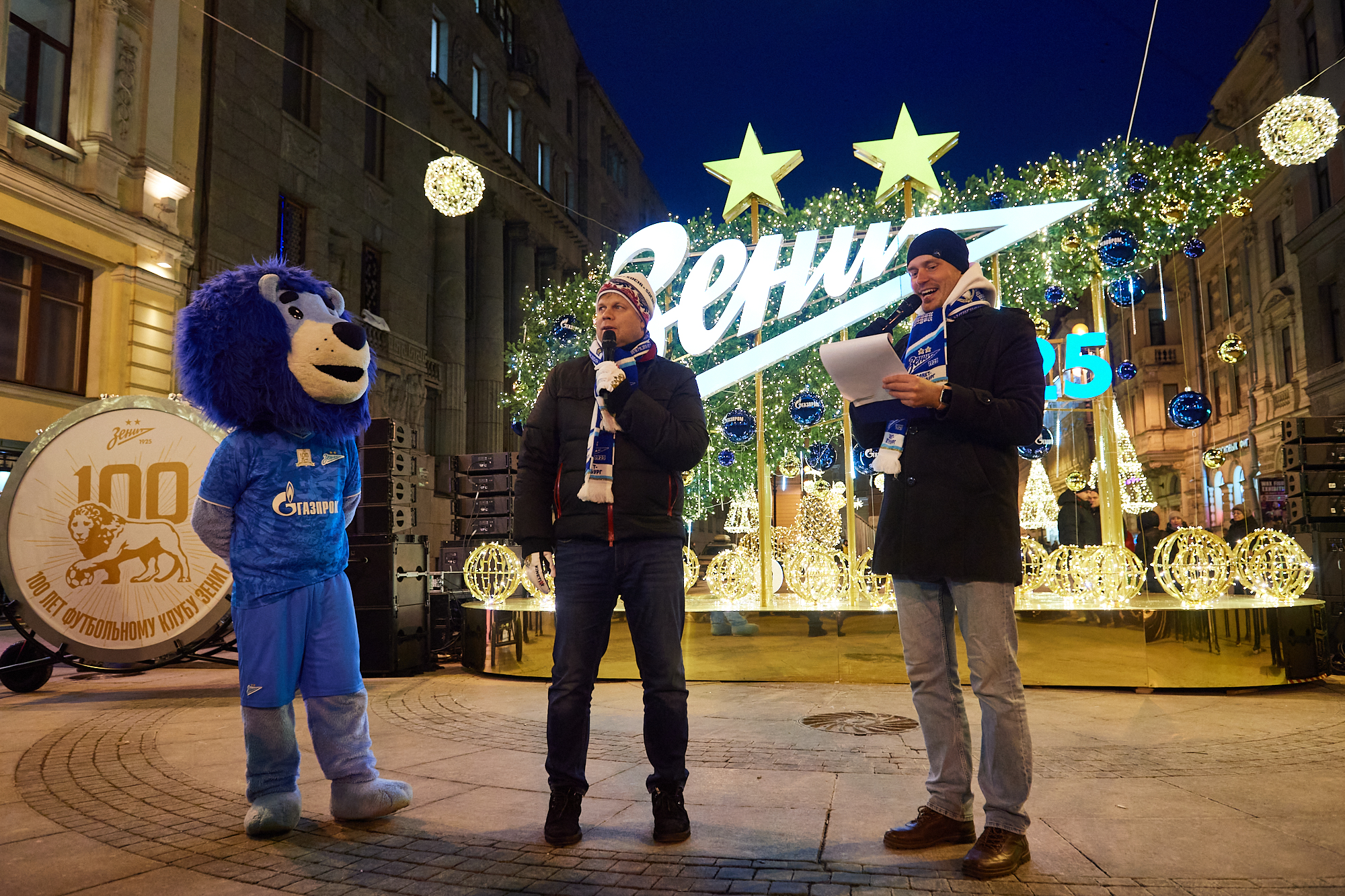 Открывая юбилейный год, сине-бело-голубые установили в центре города новогоднюю ель рядом с Дворцовой площадью. Торжественное открытие праздничной композиции стало первым городским событием в серии праздничных мероприятий в честь столетия клуба.
