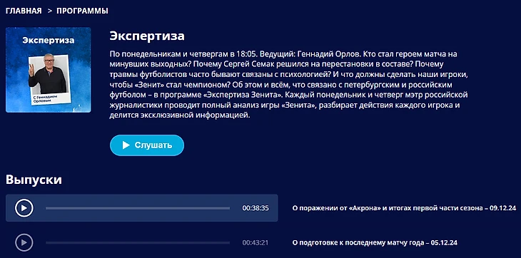 Радио «Зенит» удалило интервью Орлова о договорных матчах в российском футболе