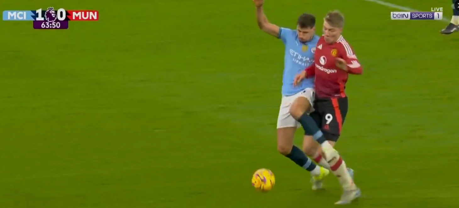 «МЮ не получил пенальти после падения Расмуса Хейлунда в штрафной «Сити».