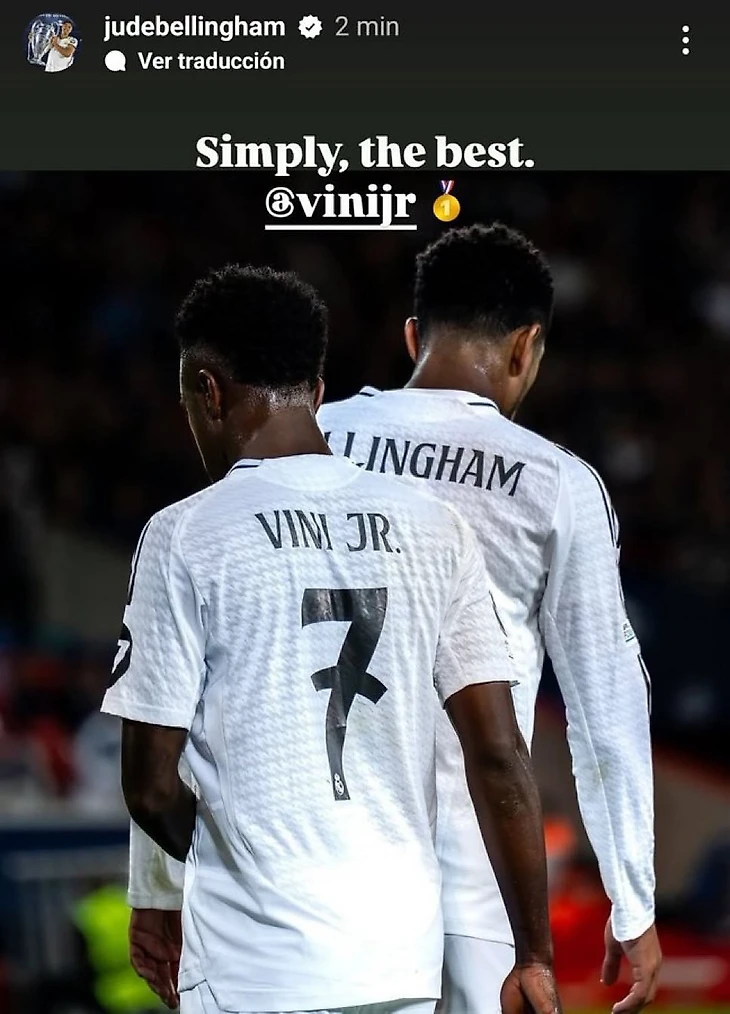 Джуд Беллингем поздравил Винисиуса Жуниора с призом игроку года от ФИФА.