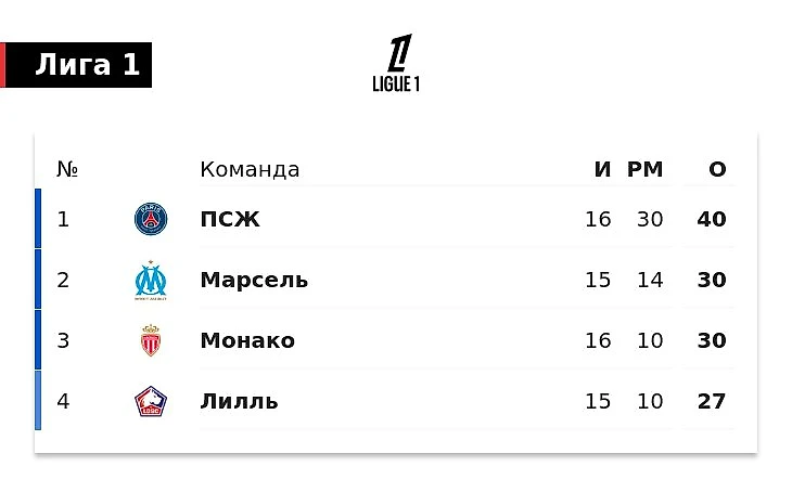 Парижане лидируют в таблице Лиги 1 с 40 очками. У «Монако» 30 очков, столько же у «Марселя» при матче в запасе. Четвертую строчку занимает «Лилль», набравший 27 очков.