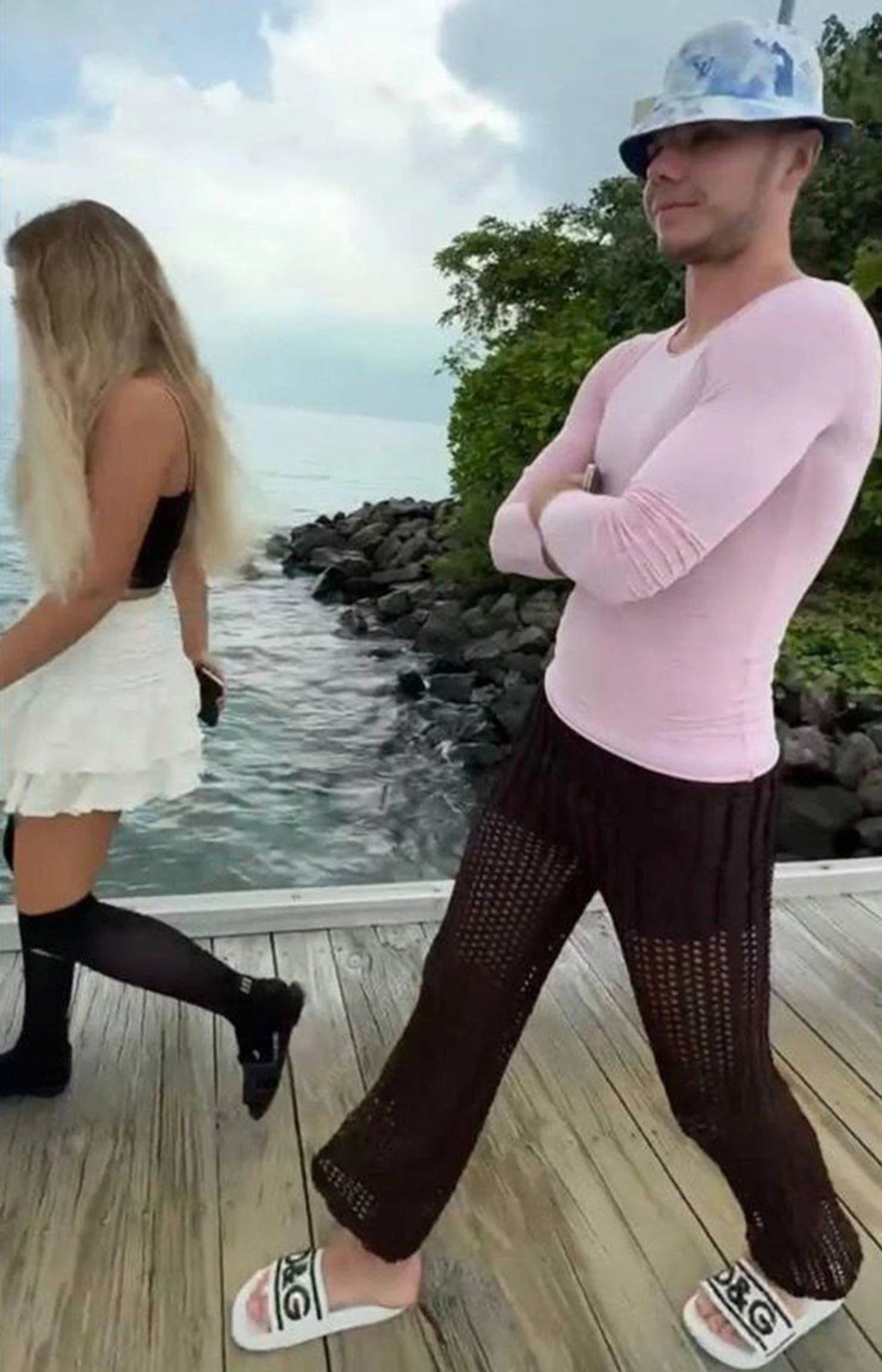 В ее телеграм-канале появилось видео, на котором Глушенков одет в розовую кофту, штаны с сеткой и тапочки D&G.