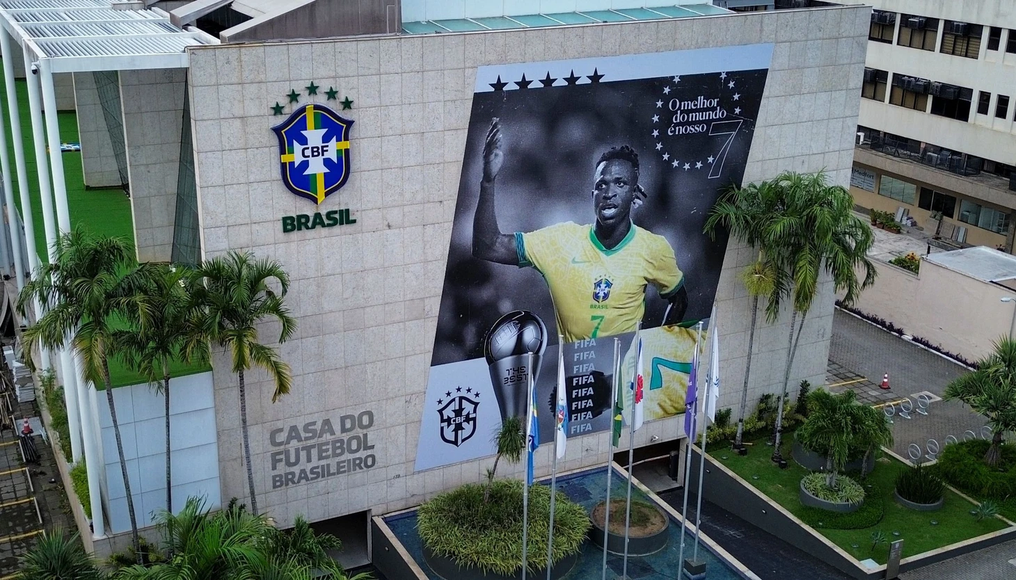 Фото Винисиуса появилось на стене штаб-квартиры Бразильской конфедерации футбола.