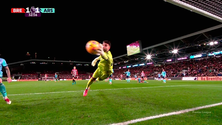 Райя вынес мяч с линии ворот после своей ошибки в матче с «Брентфордом». «Арсенал» забил спустя минуту
