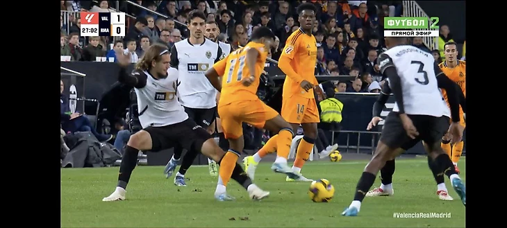 Голевая атака «Валенсии» началась после удара по ноге Родриго. Игроки «Реала» обращали внимание судьи на это после гола