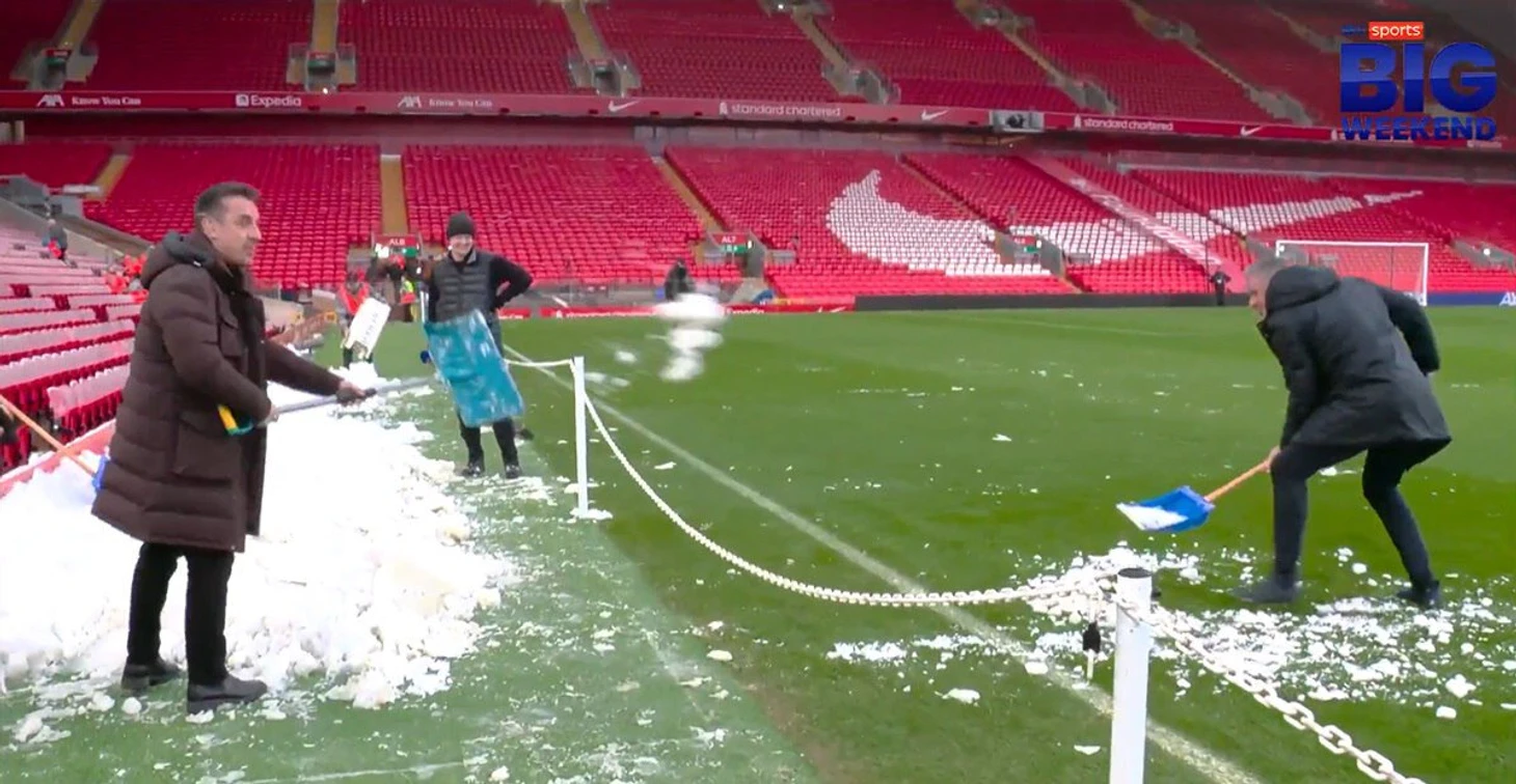 Гари Невилл и Джейми Каррагер играли со снегом перед матчем «Ливерпуля» и «МЮ».