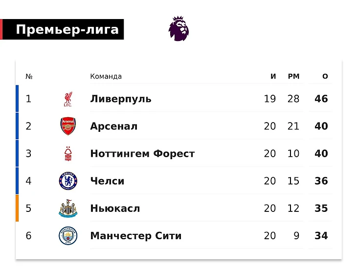 «Ноттингем» сравнялся с «Арсеналом» по очкам в АПЛ (40) и идет третьим. «Ливерпуль» опережает конкурентов на 6 баллов при игре в запасе